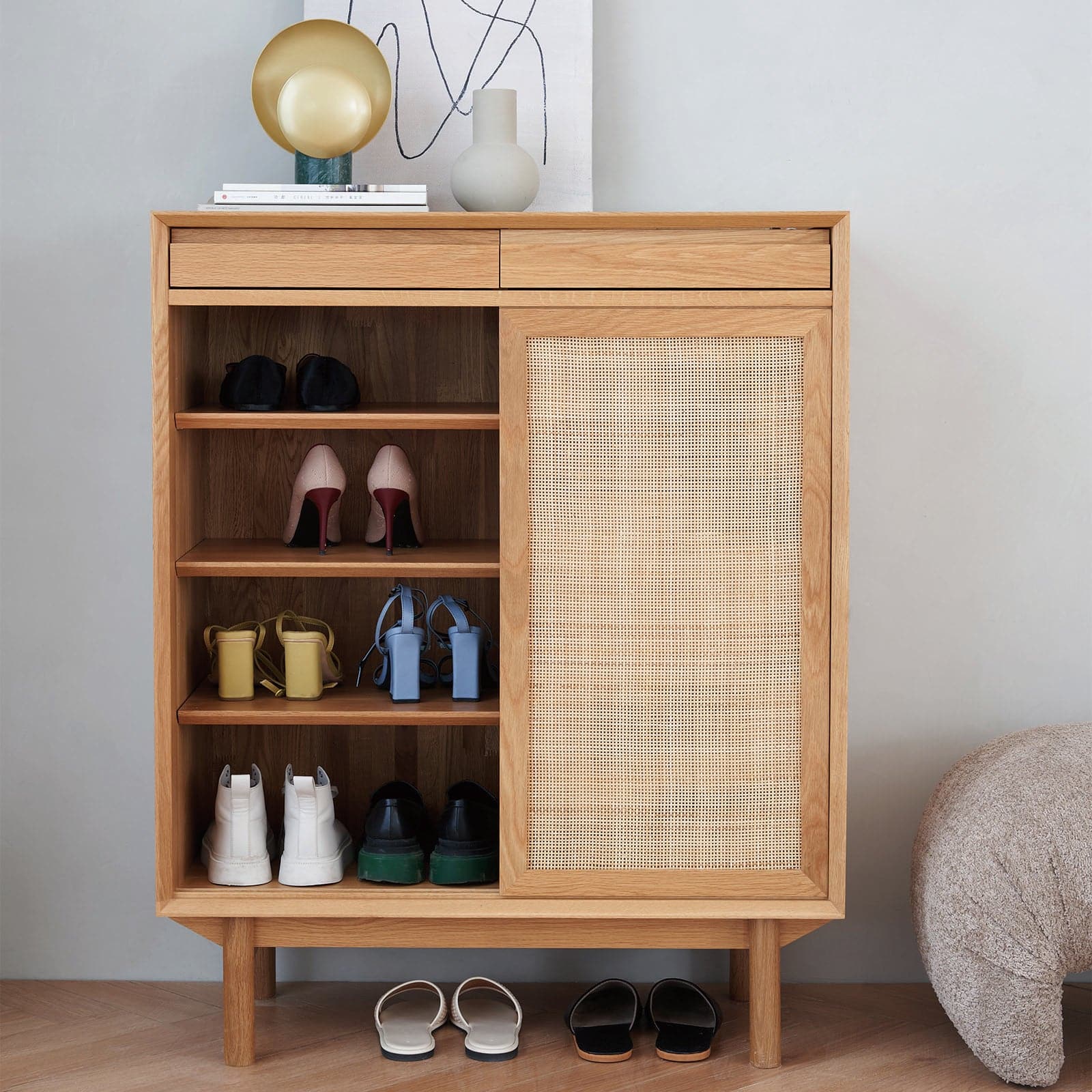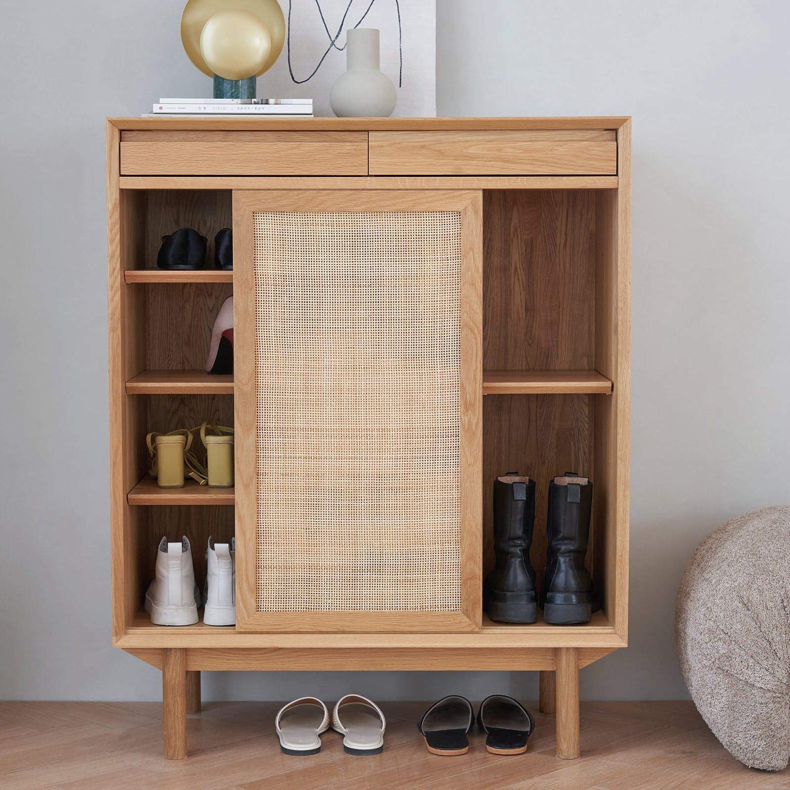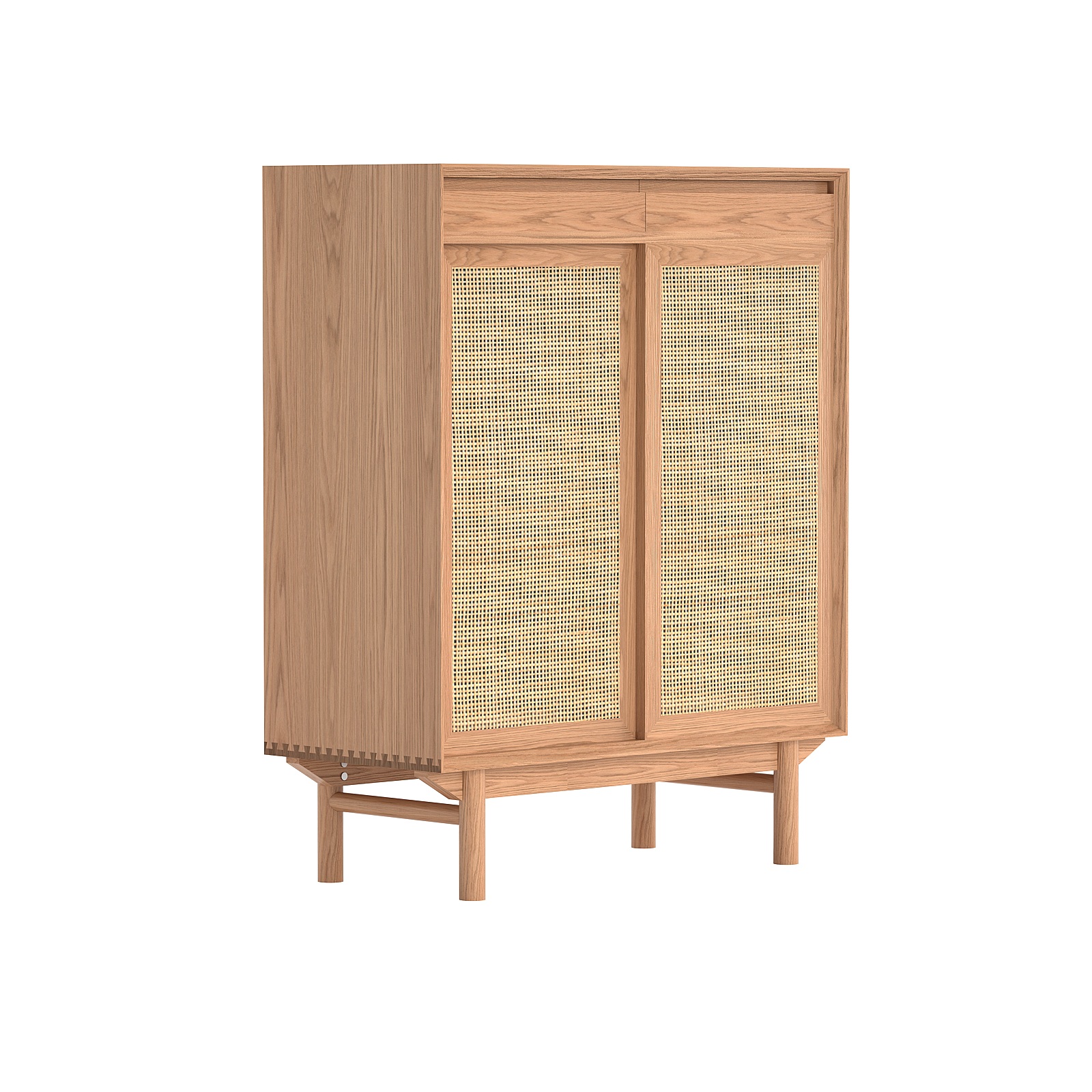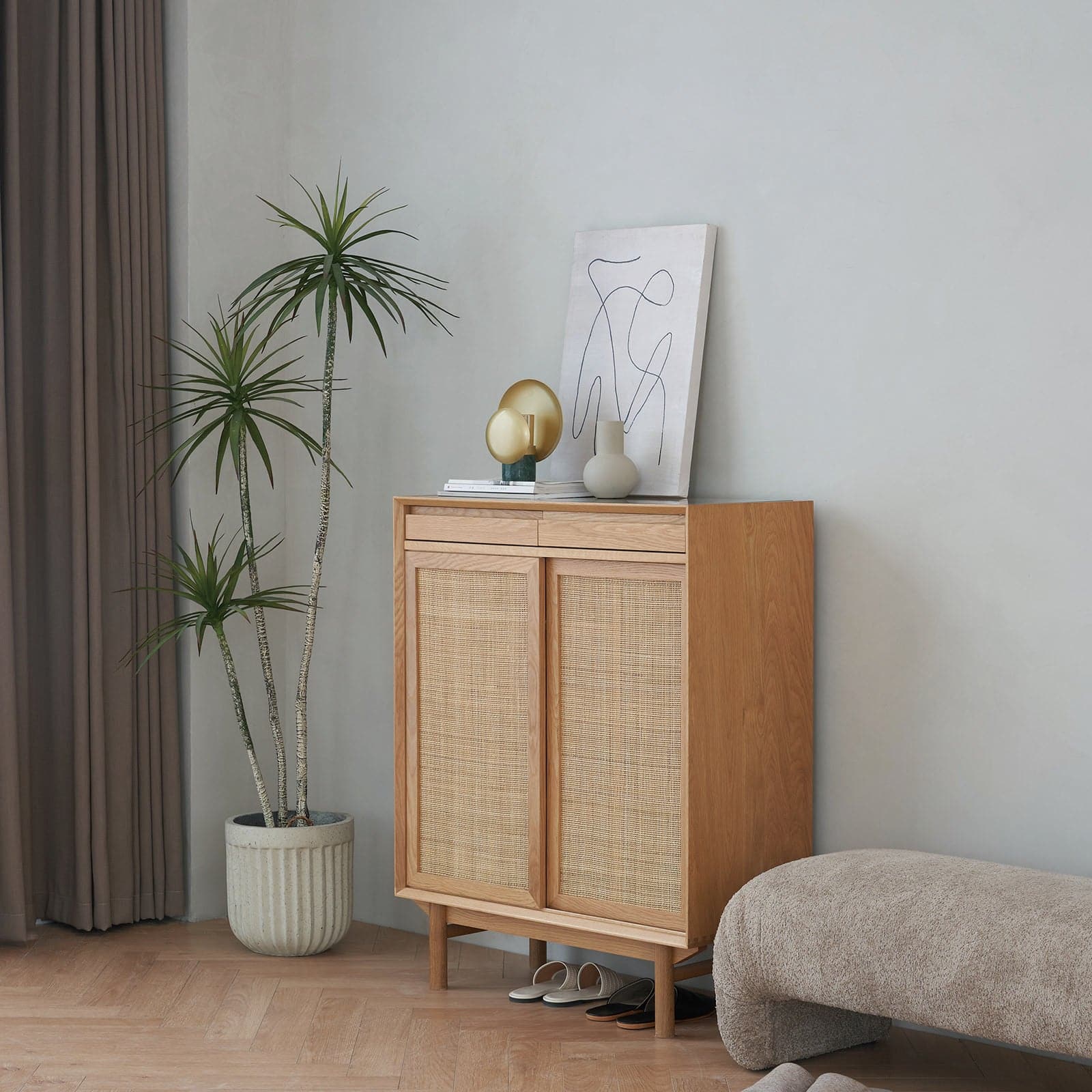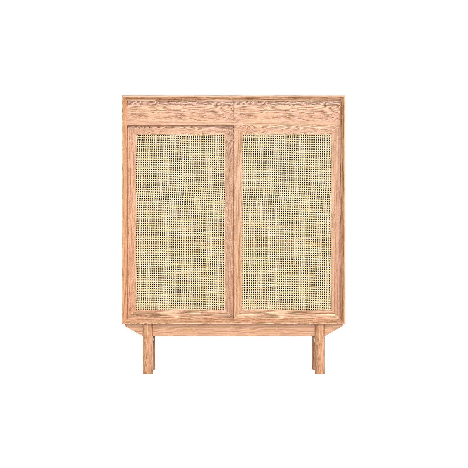 Buffet Torii / Portes en rotin tressé et plateau en verre