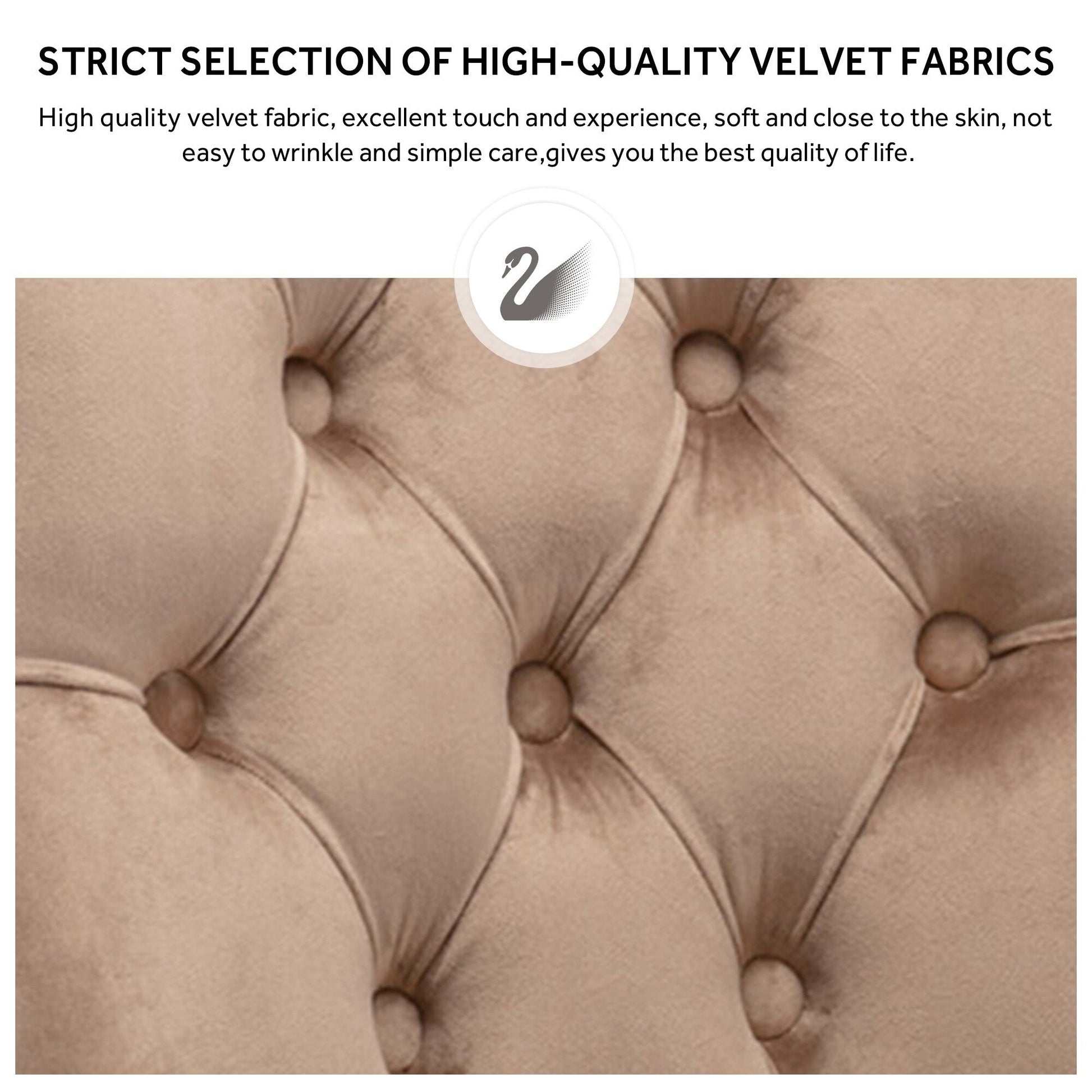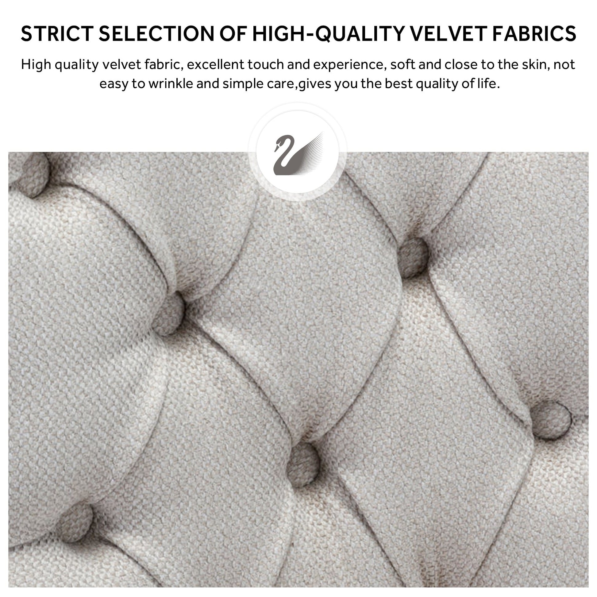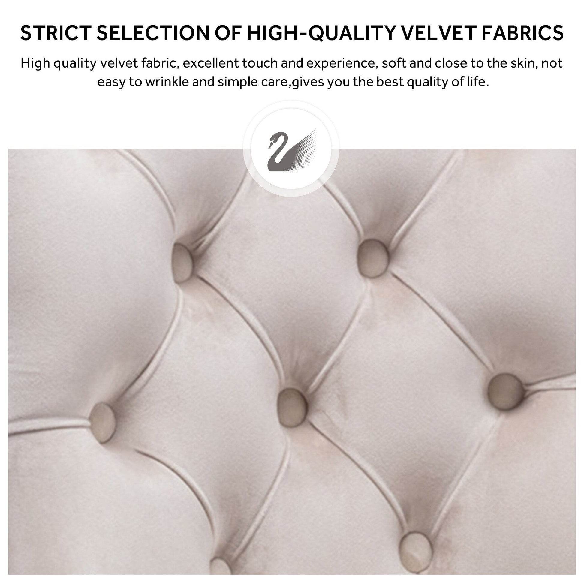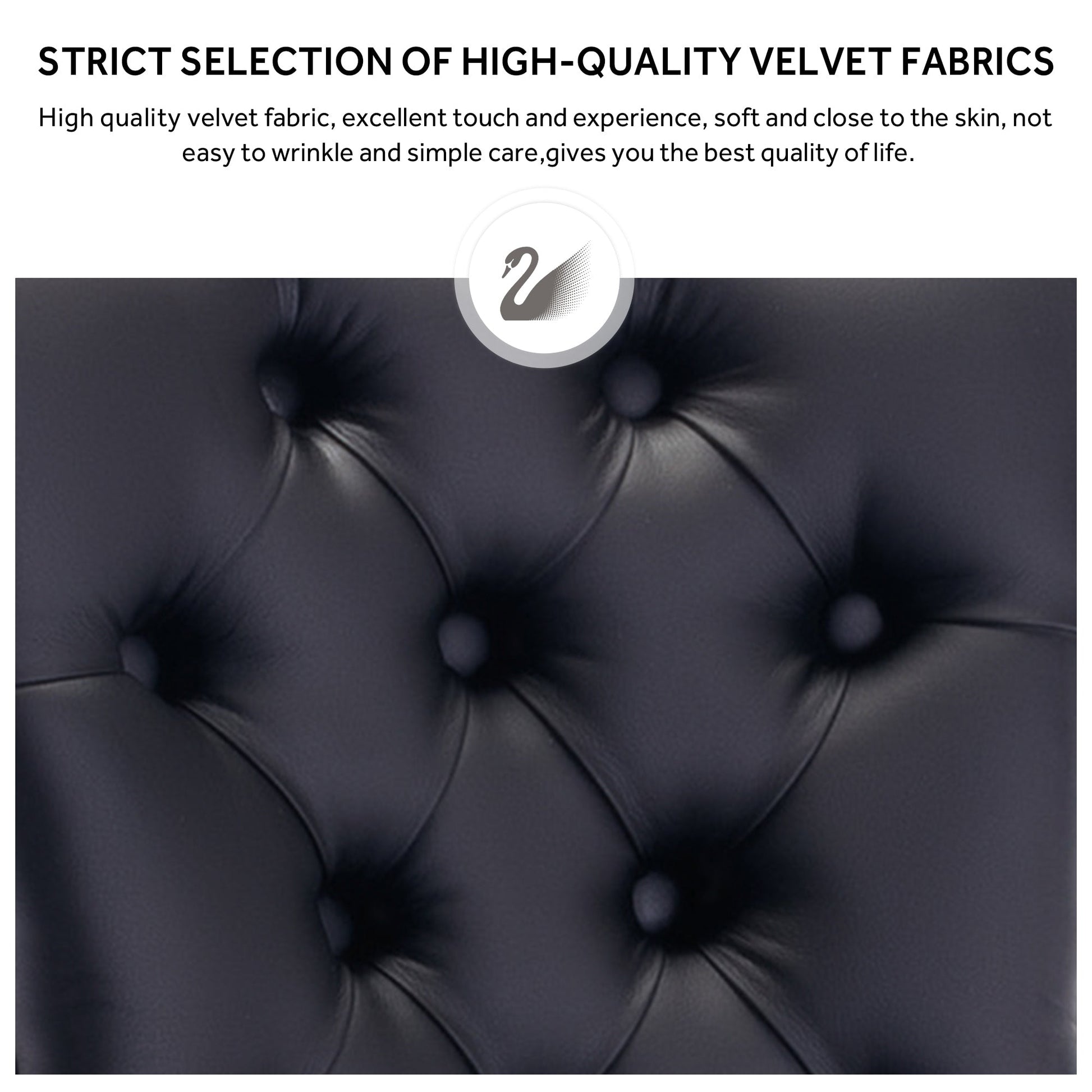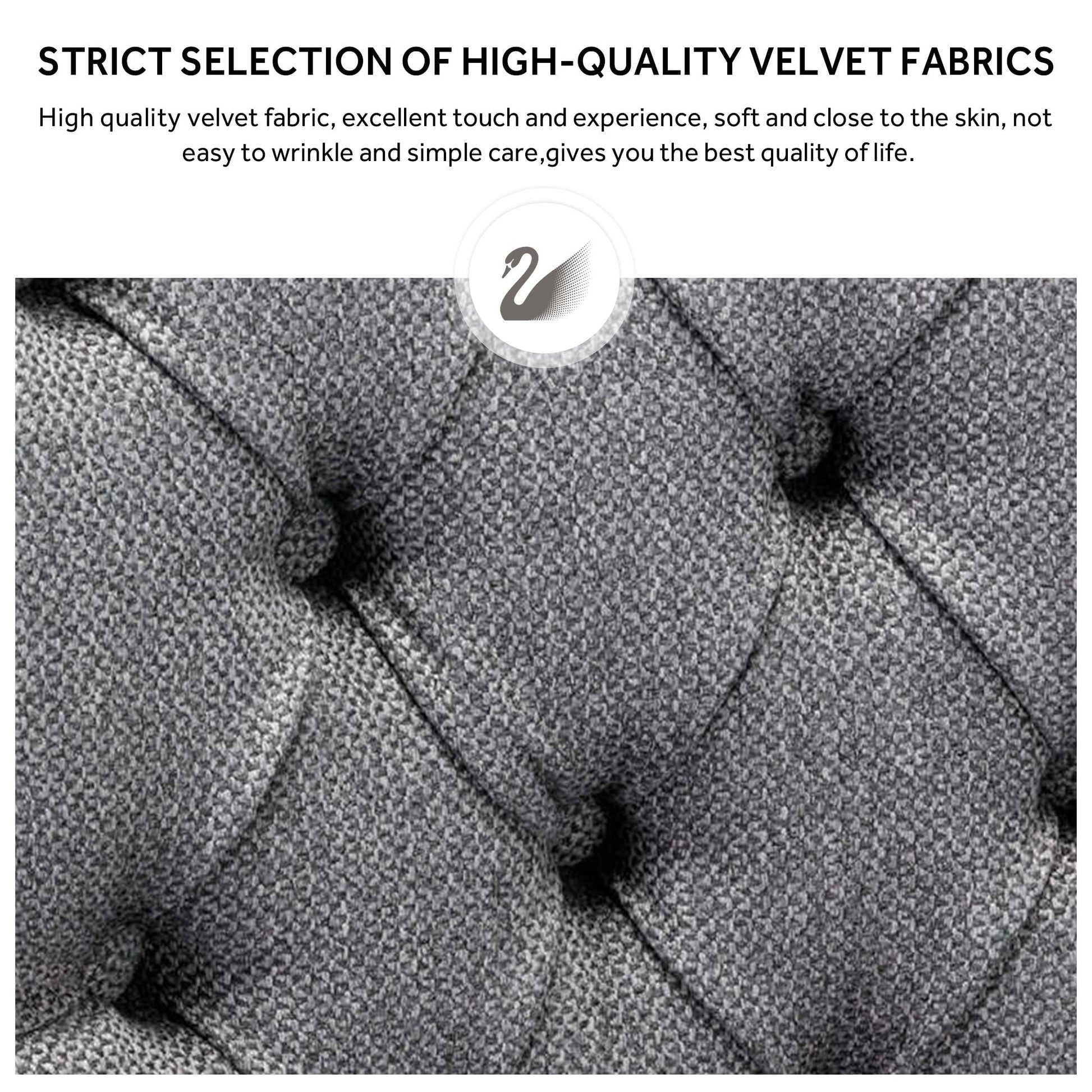 Ces chaises de salle à manger à oreilles sont confectionnées en velours de haute qualité, extrêmement résistant à l'usure et inaltérable. Le tissu, épais et luxueux, offre un toucher d'une grande finesse. Cet ensemble de chaises de salle à manger en velours arbore un style mid-century résolument moderne. Dotées d'un haut dossier, ces chaises assurent un excellent maintien du dos. Les nombreux rivets décoratifs incrustés autour du coussin et du dossier confèrent à l'ensemble une allure noble et élégante, et une impression de luxe raffiné. Nous fournissons une notice de montage et des vidéos explicatives. Pour toute question, n'hésitez pas à nous contacter.