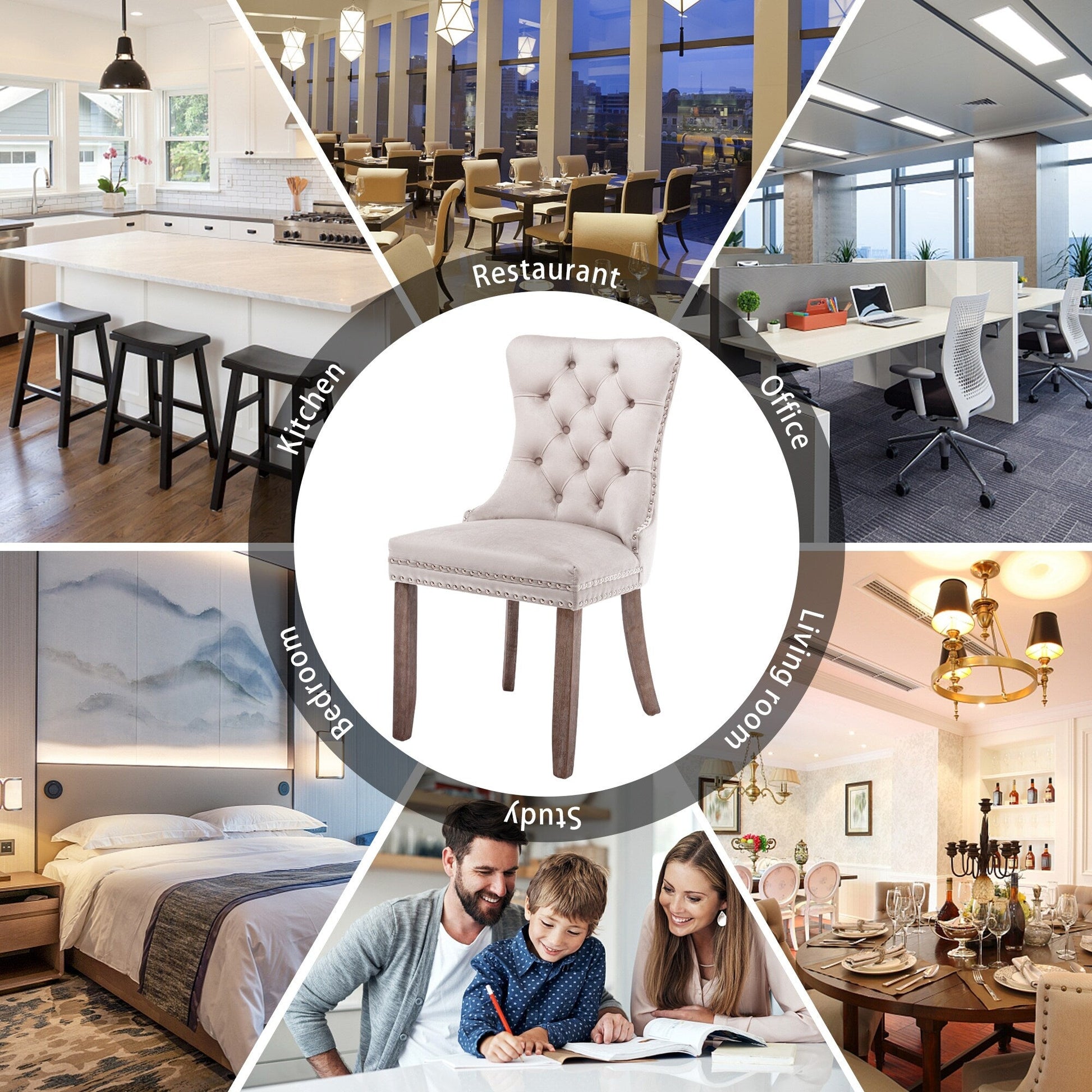 Ensemble de 6 chaises de salle à manger capitonnées en velours avec pieds en bois massif