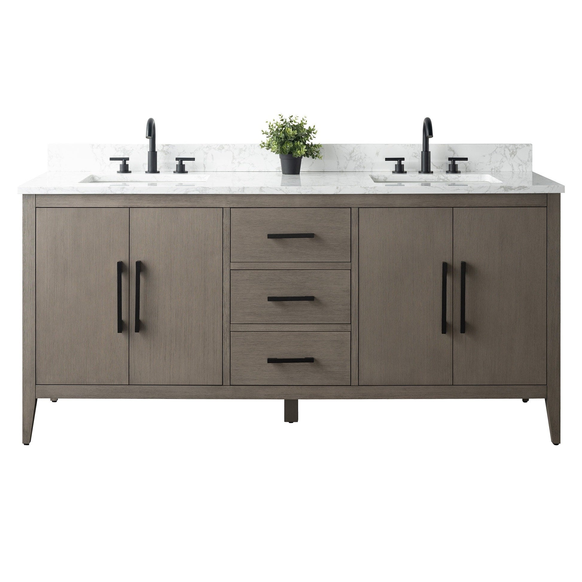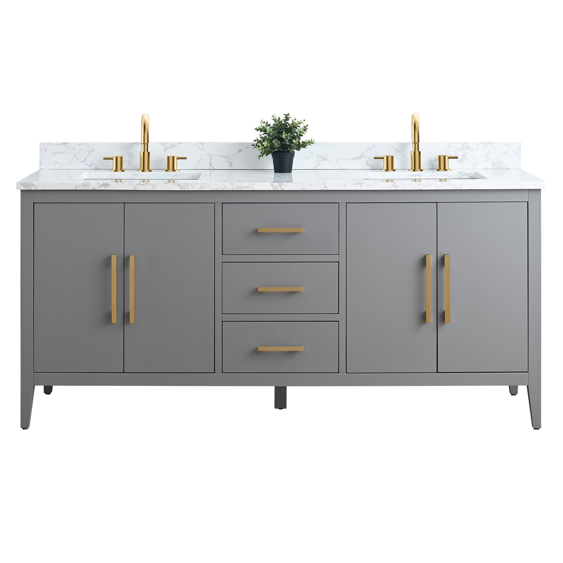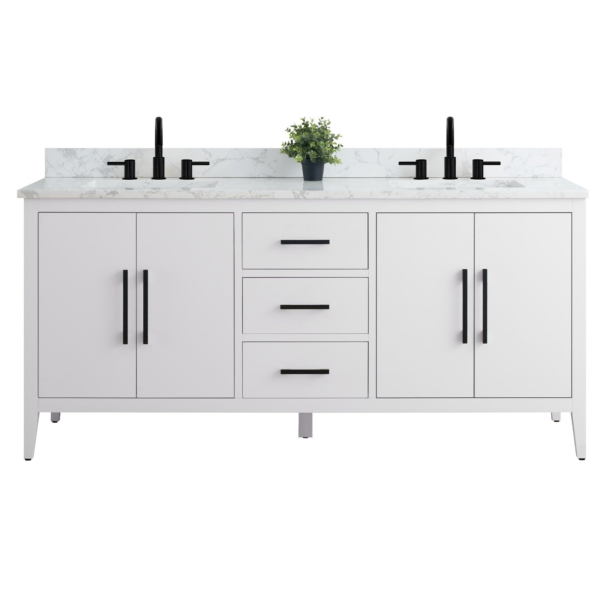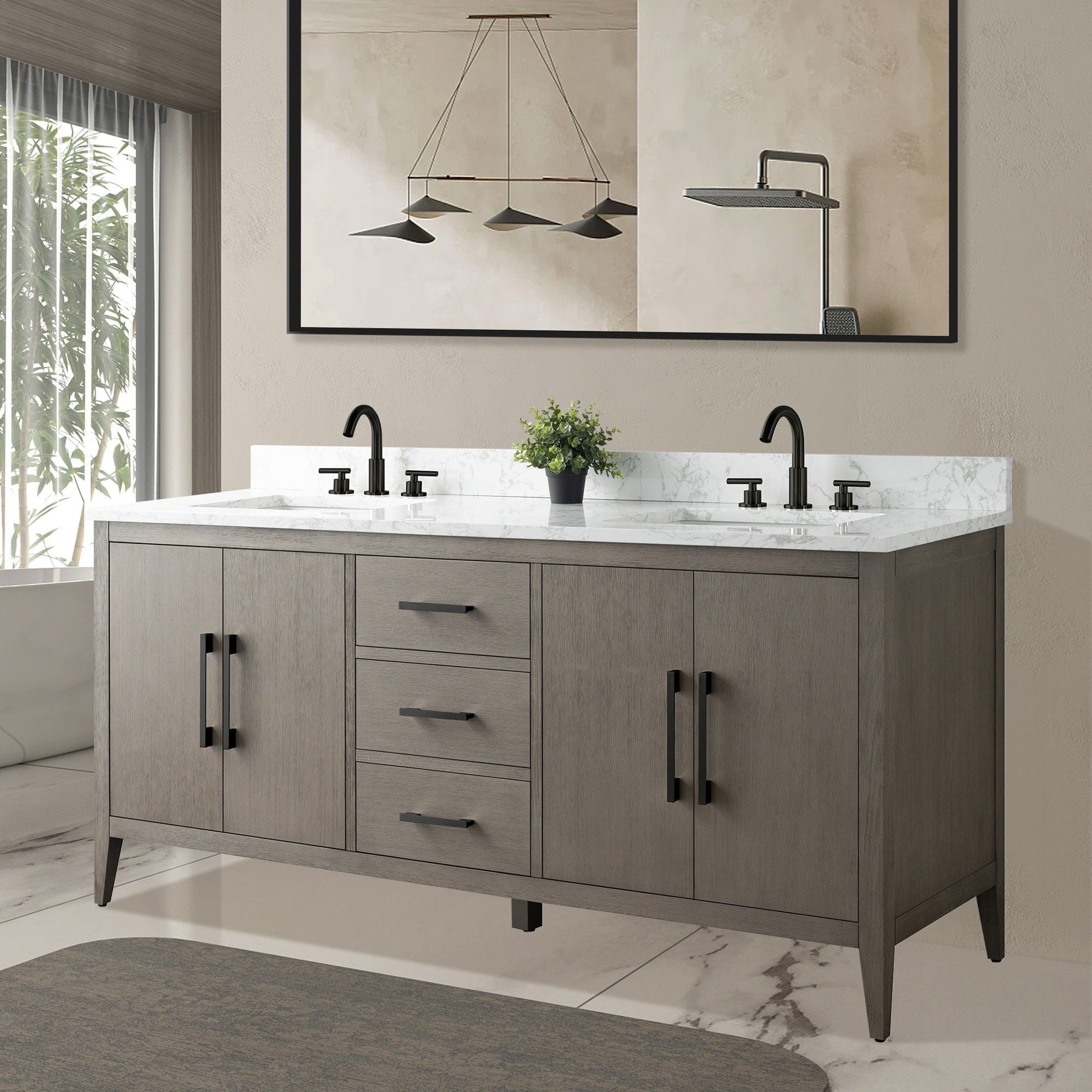 Meuble-lavabo double vasque Vanity Art 72 avec plan de travail en marbre reconstitué