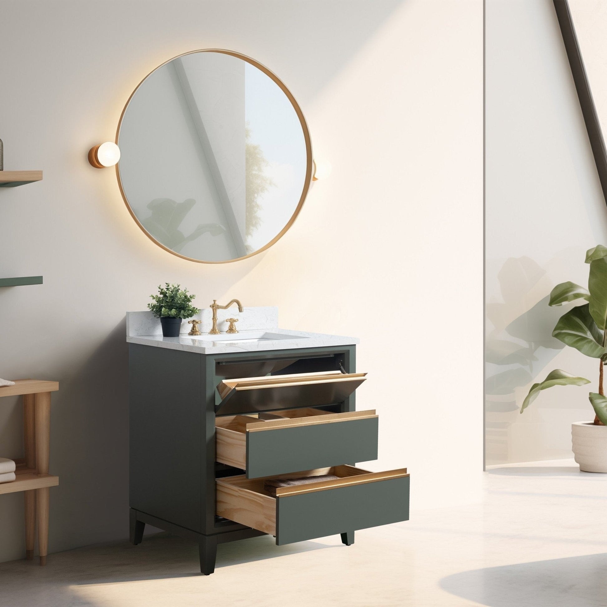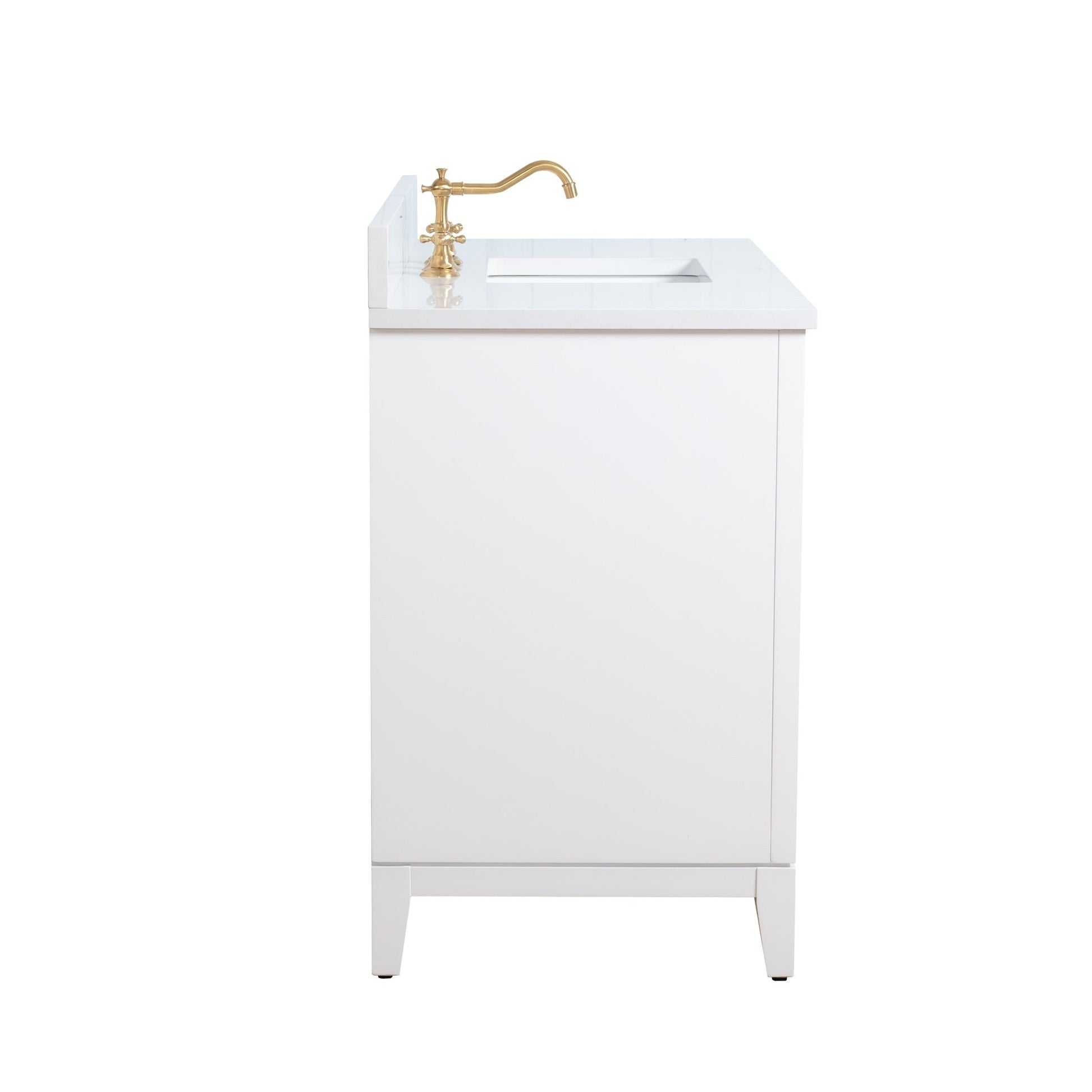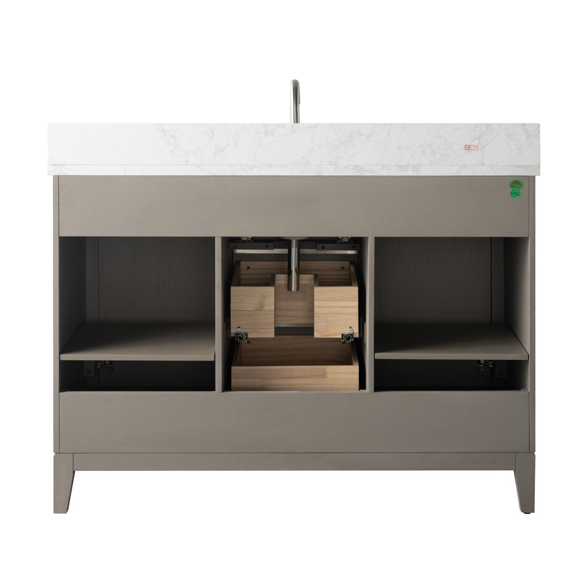 Vanity Art présente son meuble-lavabo haut de gamme en bois de peuplier. Il allie parfaitement fonctionnalité et élégance pour sublimer votre salle de bain. Ce meuble essentiel offre un espace de rangement généreux grâce à son plateau rabattable, ses étagères réglables et ses tiroirs, vous permettant ainsi de ranger vos affaires de manière organisée et d'y accéder facilement. Conçu pour votre confort, notre meuble-lavabo est doté d'un élégant plan de travail en marbre reconstitué Ariston, à la fois esthétique et facile d'entretien. La vasque rectangulaire encastrée s'harmonise parfaitement avec le plan de travail, créant ainsi une esthétique épurée et raffinée pour votre salle de bain. Robuste et durable, le meuble-lavabo est équipé de portes et de tiroirs à fermeture douce, montés sur des charnières de haute qualité, garantissant une utilisation fluide et fiable. Polyvalent, ce meuble-lavabo s'intègre également dans une cuisine équipée d'un évier.