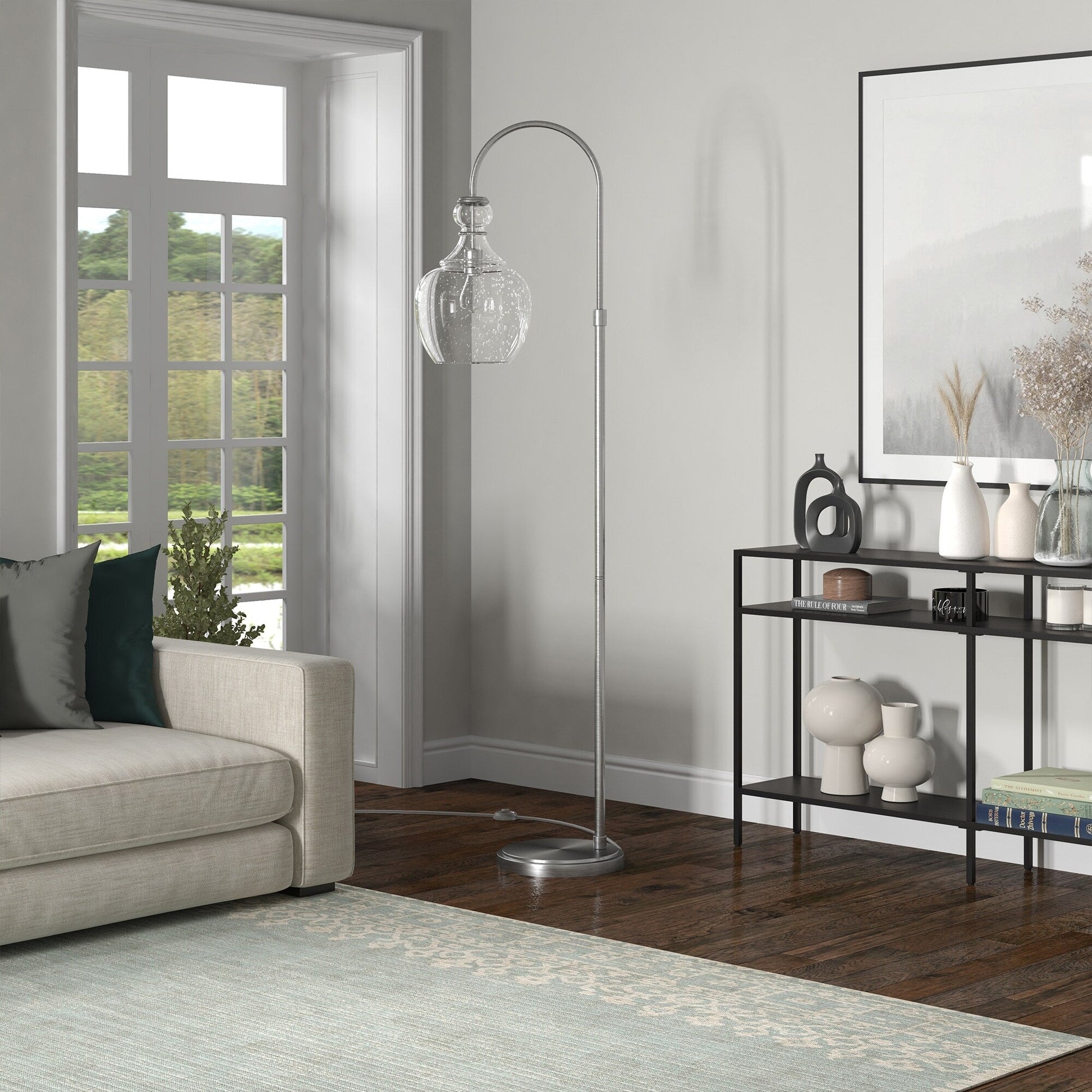 Lampadaire arqué Verona avec abat-jour en verre