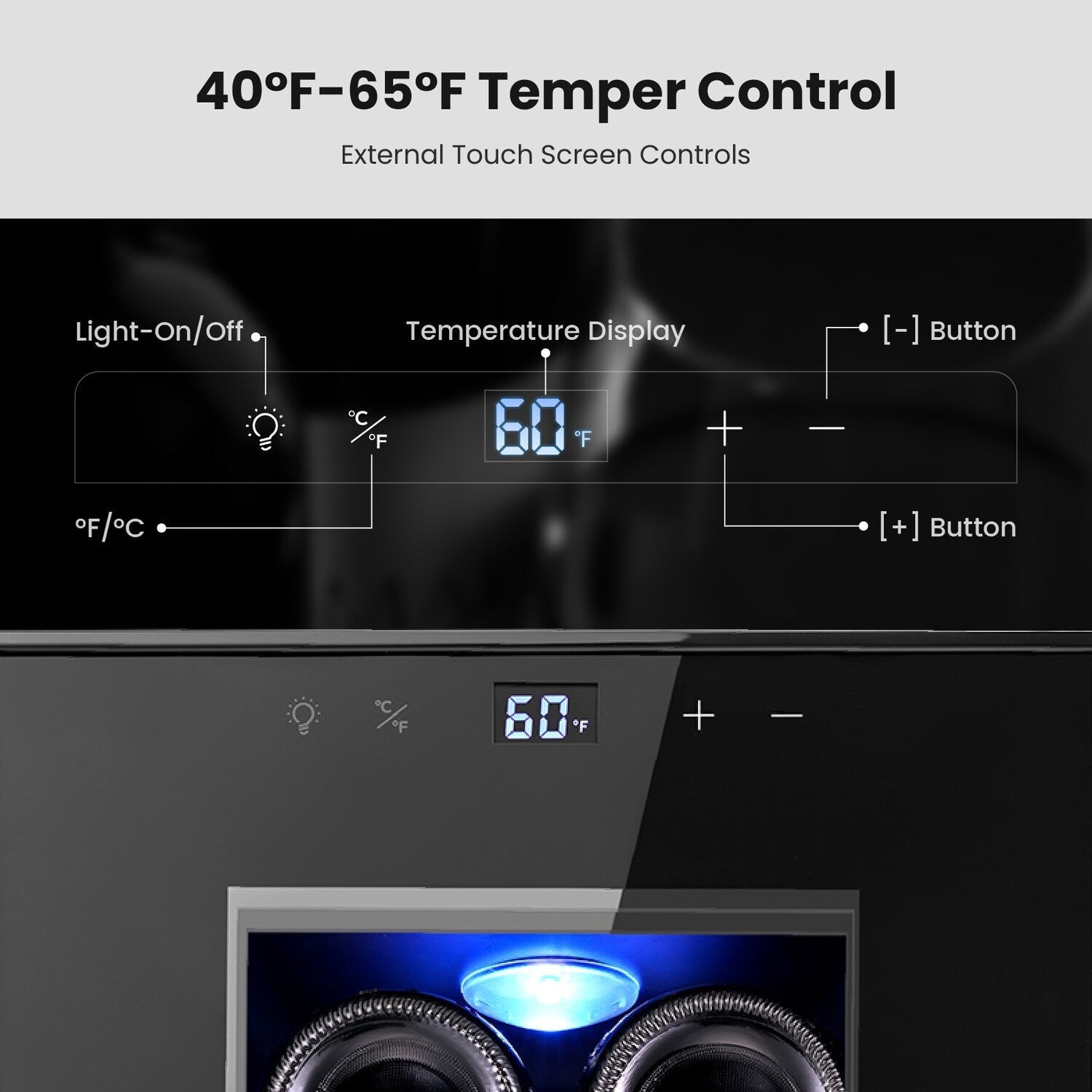 - Panneau tactile intelligent : Contrôlez et surveillez facilement les températures grâce à l’interface tactile intuitive, et assurez-vous que vos vins soient conservés dans des conditions optimales.